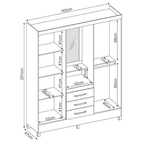 Se você está em busca de um guarda-roupa para manter seu quarto organizado, mas também gostaria que ele oferecesse praticidade e economia, o modelo Pérsia é uma ótima opção. Versátil, ele conta com nicho, prateleira e espelho na parte externa central, funcionando perfeitamente como penteadeira.