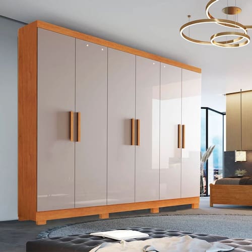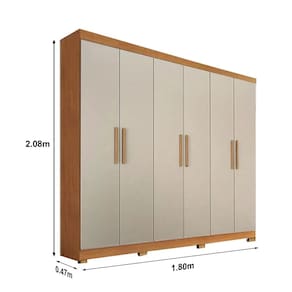 Guarda-Roupa Casal 6 Portas Larg. 1.80m Sergipe Nature/Off White Com Pés BianchiMedidas:Largura: 1.80mProfundidade: 0.47mAltura: 2.08mCaracterísticas:- Estrutura em MDP- 02 gavetas com corrediça telescópica, que permite a abertura total das gavetas- 06 portas com dobradiças metálicas- Cabideiros em alumínio- Puxadores em madeira* As imagens dos produtos são meramente ilustrativas. As cores podem sofrer variações dependendo da luminosidade, tipo de câmera, ou mesmo a visualização das imagens em computadores ou notebooks com telas LCD ou LED, tablets ou smartphones dependendo da quantidade de pixls, podendo deixar as imagens com cores mais opacas ou cores mais vibrantes. Os objetos decorativos presentes na imagem não acompanham o produto. Marca: Le Bianchi