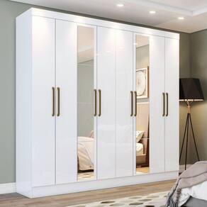 O Roupeiro Nevi é perfeito para quem quer bastante espaço na hora de organizar o quarto. Com divisão interna inteligente, tem 4 gavetas, 2 cabideiros e 2 calceiros de madeira, as prateleiras são amplas, perfeitas para acomodar suas roupas de maneira organizada, é ideal para você que precisa dividir o roupeiro. Tem design moderno e contemporâneo, combina com vários estilos de decoração. São duas opções de cores pra você escolher, Branco Brilho ou Preto HP -fosco-, você também pode adquirir o móvel com ou sem o kit espelho.