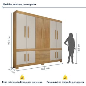 Sim, recomendamos um profissional para garantir segurança e acabamento ideal. Acabamento da Prateleira: Pintura UV Escala de Brilho da Prateleira: Fosco Acabamento da Gaveta: Pintura UV Escala de Brilho da Gaveta: Fosco Material do Puxador da Gaveta: MDF Possui Organizador de Gaveta: Não Acabamento da Porta: Pintura UV Escala de Brilho da Porta: Fosco Material do Puxador da Porta: MDF Acabamento dos Pés: Pintura Altura dos Pés: 5 cm Altura Máxima dos Pés: 5.0000 Ambiente Principal: Quarto codigo_ean: 7900288166098 Complexidade da Montagem: Alta: deve ser montado por um montador especializado Cor: Cinamomo/Off White Cor do Produto: Cinamomo/Off White Escala de Brilho: Fosco Espessura da Estrutura (mm): 12 mm Espessura das Portas (mm): 12 mm Espessura das Prateleiras (mm): 12 mm Espessura do Fundo (mm): 2,5 mm Espessura do Fundo das Gavetas (mm): 2,5 mm Itens Inclusos: 1 Guarda-Roupa e Manual de Montagem. Linha ou Coleção: Lucca Manual de Montagem e Instalação: https://product-hub-prd.madeiramadeira.com.br/243976890/documents/2726ad8c-3dc7-4892-bfd5-67b2ad40fa4c29755117321749059081021.pdf Marca: Valdemóveis Material da Gaveta: MDF Material da Porta: MDF Material da Prateleira: MDF Material dos Pés: ABS Material Principal: MDF modular: Não Necessita Montagem: Sim Nicho com Cabideiro: Não Origem do Produto: Nacional Peso: 108 kg Peso Máximo por Gaveta: 5 kg Peso Máximo por Prateleira: 10 kg Possui Calceiros: Não Possui Espelho: Não Possui Pés: 06 Possui Portas: Sim Possui Prateleiras: Sim Produto Montado: Sim Quantidade de Cabideiros: 02 Cabideiros Quantidade de Gavetas: 03 Gavetas Recomendações de Uso, Manutenção e Limpeza: Limpar com pano macio e levemente umedecido. Não utilizar solventes a base e de inflamáveis. Não utilizar produtos abrasivos. Sistema de Montagem: Parafusos. Tipo de Corrediça da Gaveta: Metálica Telescópica Tipo de Dobradiça/Corrediça da Porta: Metálica Tipo de Gaveta: Externa Tipo de Guarda-Roupa: Casal Tipo de Puxador da Gaveta: Externo Tipo de Puxador da Porta: Externo