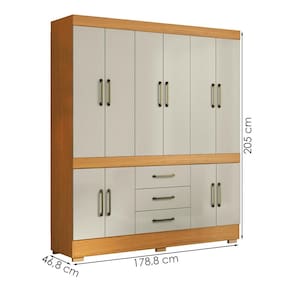 MDP (15/12 mm)Guarda Roupa Casal Monaco, design espaçoso e resistente para transformar seu quarto. Estrutura em MDP (15/12 mm) e acabamento em Verniz. Possui portas com dobradiças metálicas, gavetas com corrediças telescópicas, amplas prateleiras internas, cabideiro em madeira com revestimento PVC, espaço para calçados e puxadores em plástico. Este produto será entregue em 2 volumes.