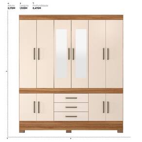 Material: MDP | Cor: Amêndola Touch | Guarda Roupa Altura x Largura x Profundidade: 2,17 x 1,92 x 0,47 | Material do Guarda Roupa: MDP | Quantidade de Portas Guarda Roupa: 10 | Quantidade de Gavetas Guarda Roupa: 3 | Cômodo Indicado: Quarto | Possui Prateleira: Sim | Possui Gaveta: Sim | Tipo da Corrediça da Gaveta do Guarda Roupa: Metálica | Tipo de Porta do Guarda Roupa: Bater | Possui pés: Não | Possui Espelho: Sim | Quantidade de espelhos: 2 | Instruções/Cuidados: Evite com líquidos. Nada de lavar os móveis. Móveis não gostam de umidade. Não deixe o móvel exposto ao sol. Os acessórios também precisam de limpeza. | Material para Filtro: MDP | Quantidade de Volumes: 3 | Peso Bruto: 106 | Altura do Produto (cm): 217 | Largura do Produto (cm): 192 | Comprimento do Produto (cm): 47 | Nome do Simples no Fornecedor: New Murano | do Fabricante: 90 dias | Produto precisa de Montagem?: Sim, a montagem é simples mas sugerimos a contratação de algum experiente de sua preferência | Material da Estrutura: MDP | Necessita Fixação na Parede: Não | Conteúdo Embalagem: Guarda Roupa Casal | Origem: | Estado de Origem: Paraná | Peso Bruto (volume 01): 55 Kg | Comprimento x Largura x Altura (volume 01): 2,15 x 0,47 x 0,10 | Peso Bruto (volume 02): 49 Kg | Comprimento x Largura x Altura (volume 02): 1,95 x 0,66 x 0,07 | Peso Bruto (volume 03): 1,4 Kg | Comprimento x Largura x Altura (volume 03): 0,70 x 0,20 x 0,06 Cor: Amêndola Touch/Off White