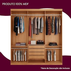 Guarda-roupa Chile 100 MDF 3 portas de correr com 4 Gavetas e com Espelho