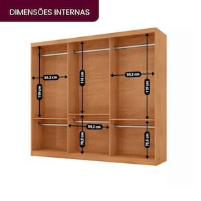 Guarda-roupa Chile 100 MDF 3 portas de correr com Espelho