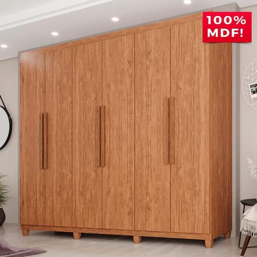 O Guarda Roupa Espanha 6 portas é um produto de excelente qualidade, funcionalidade e beleza, ele é a melhor opção para deixar seu dormitório muito mais charmoso e convidativo. Com corrediças telescópicas que permitem uma abertura total das gavetas, divisões internas amplas que oferecem praticidade e organização, 4 gavetas espaçosas para guardar tudo que precisa e puxadores de madeira que garantem maior durabilidade. Se encaixa facilmente em vários estilos de decoração com cores super atuais. Aproveite, você merece!.