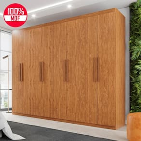 Procurando por um roupeiro espaçoso e que tenha um design super elegante? O Roupeiro Herrera 8 portas é o ideal para você. Possui um visual clássico, com puxadores em madeira que conferem maior estabilidade ao abrir e fechar, além de trazer maior elegância ao móvel. Conta com 4 gavetas com fundo reforçado para acomodar as peças mais delicadas, cabideiros revestido em polipropileno . Com estruturas em chapas de 15mm, as dobradiças são metálicas, tornando as portas mais firmes e fáceis de abrir, sem perder a regulagem com o tempo. em sua confecção é utilizada a pintura UV, que preservam a sua cor por mais tempo.