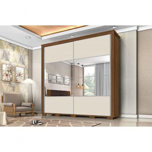 Guarda Roupa Casal 100% Mdf California Porta Correr Com Espelho 7 Gavetas Canela Off White Carmolar