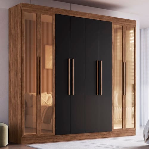 Está à procura da melhor opção para organizar seus pertences e ainda manter o charme do seu quarto? Então conheça o Guarda Roupa Chicago, da Móveis Doripel, produzido 100% MDF com revestimento em impressão UV, conta com 8 portas de abrir, sendo 4 delas reflecta modernizando ainda mais seu quarto, tendo a possibilidade de escolher a forma de montagem das portas reflecta se nas portas do meio ou nas das pontas parte interna conta com cabideiro, 6 prateleiras e 4 gavetas com corrediças telescópicas. Não perca tempo e garanta já o seu! Acabamento da Prateleira: Pintura UV Escala de Brilho da Prateleira: Fosco Possui Cabideiros: Não Acabamento da Gaveta: Pintura UV Escala de Brilho da Gaveta: Fosco Possui Organizador de Gaveta: Não Acabamento da Porta: Pintura UV Escala de Brilho da Porta: Semi-Brilho Material do Puxador da Porta: MDF Ambiente Principal: Quarto codigo_ean: 7900288041951 Complexidade da Montagem: Alta: deve ser montado por um montador especializado Cor: Castanho/Preto Cor do Produto: Castanho/Preto Cor do Puxador: Marrom Cor Interna: Castanho Escala de Brilho: Semi-Brilho Espessura da Estrutura (mm): 15 mm Espessura das Portas (mm): 15 mm Espessura das Prateleiras (mm): 12 mm Espessura do Fundo (mm): 3 mm Espessura do Fundo das Gavetas (mm): 3 mm Gaveta com Chave: Não Guarda-Roupa Suporta Até (kg): 90 kg Itens Inclusos: 1 Guarda Roupa, 1 Kit Ferragens e 1 Manual de Montagem Linha ou Coleção: Selecta Manual de Montagem e Instalação: https://product-hub-prd.madeiramadeira.com.br/970430/documents/83152d9f-f348-45b4-bc5a-beaf90b635445094c0e5ace51656395rp60800.pdf Marca: Móveis Doripel Material da Gaveta: MDF Material da Porta: MDF Material da Prateleira: MDF Material Principal: MDF modular: Não Necessita Montagem: Sim Nicho com Cabideiro: Não Origem do Produto: Nacional Peso: 155 kg Peso Máximo por Gaveta: 8 kg Peso Máximo por Prateleira: 8 kg Porta Janelada: Não Possui Calceiros: Não Possui Capelinha: Não Possui Espaço para Vestidos Longos: Não Possui Espelho: Não Possui Espelho Interno: Não Possui Ganchos: Não Possui iluminação: Não Possui Nichos: Não Possui Painel de TV: Não Possui Penteadeira: Não Possui Pés: Não Possui Portas: Sim Possui Prateleiras: Sim Possui Sapateira: Não Produto Montado: Sim Quantidade de Gavetas: 04 Gavetas Quantidade de Prateleiras: 06 Prateleiras Recomendações de Uso, Manutenção e Limpeza: Limpar com flanela levemente umedecida Sistema de Montagem: Parafusos Suporta Até (kg): 90 kg Tipo de Corrediça da Gaveta: Metálica Telescópica Tipo de Dobradiça/Corrediça da Porta: Metálica Tipo de Gaveta: Interna Tipo de Guarda-Roupa: Casal Tipo de Puxador da Gaveta: Não Possui Tipo de Puxador da Porta: Externo