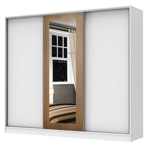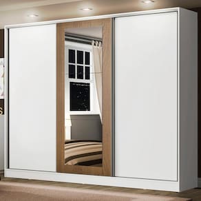 O acabamento é interno e externo é branco. A porta com espelhos é no padrão amadeirado Rustic e as demais são brancas. O processo é feito em Pintura Poliéster de alta resistência que aumenta a durabilidade do móvel. Além disso, é ecológico, livre de vapores que prejudicam a atmosfera.