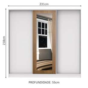 Medidas totais do armário: 218 cm de altura x 231 cm de largura x 55 cm de profundidade.