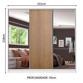 Medidas totais do armário: 218 cm de altura x 231 cm de largura x 55 cm de profundidade.