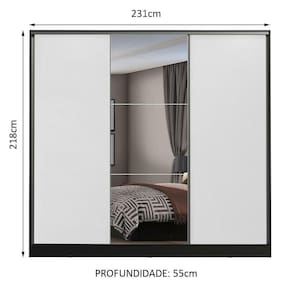 Medidas totais do armário: 218 cm de altura x 231 cm de largura x 55 cm de profundidade.