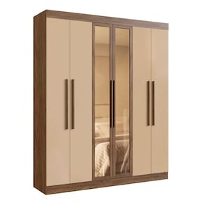 Está à procura da melhor opção para organizar seus pertences e ainda manter o charme do seu quarto? Então conheça o Guarda Roupa Malibu, da Móveis Doripel, produzido 100% MDF com revestimento em impressão UV, conta com 6 portas de abrir sendo 2 delas reflecta para modernizar ainda mais seu quarto, parte interna conta com cabideiro, 3 prateleiras e 2 gavetas com corrediças telescópicas. Não perca tempo e garanta já o seu! Acabamento da Prateleira: Pintura UV Escala de Brilho da Prateleira: Fosco Possui Cabideiros: Sim Acabamento da Gaveta: Pintura UV Escala de Brilho da Gaveta: Fosco Possui Organizador de Gaveta: Não Acabamento da Porta: Pintura UV Escala de Brilho da Porta: Semi-Brilho Material do Puxador da Porta: MDF Ambiente Principal: Quarto codigo_ean: 7900288041982 Complexidade da Montagem: Alta: deve ser montado por um montador especializado Cor: Castanho/Nude Cor do Produto: Castanho/Nude Cor do Puxador: Marrom Cor Interna: Castanho Escala de Brilho: Semi-Brilho Espessura da Estrutura (mm): 15 mm Espessura das Portas (mm): 15 mm Espessura das Prateleiras (mm): 12 mm Espessura do Fundo (mm): 3 mm Espessura do Fundo das Gavetas (mm): 3 mm Gaveta com Chave: Não Guarda-Roupa Suporta Até (kg): 70 kg Itens Inclusos: 1 Guarda Roupa, 1 Kit Ferragens e 1 Manual de Montagem Linha ou Coleção: Selecta Manual de Montagem e Instalação: https://product-hub-prd.madeiramadeira.com.br/970441/documents/8c6a09ca-83f1-40c1-9777-c7d3272f08ceb7e6807b300c1656593rp21706.pdf Marca: Móveis Doripel Material da Gaveta: MDF Material da Porta: MDF Material da Prateleira: MDF Material Principal: MDF modular: Não Necessita Montagem: Sim Nicho com Cabideiro: Não Origem do Produto: Nacional Peso: 123 kg Peso Máximo por Gaveta: 8 kg Peso Máximo por Prateleira: 8 kg Porta Janelada: Não Possui Calceiros: Não Possui Capelinha: Não Possui Espaço para Vestidos Longos: Não Possui Espelho: Não Possui Espelho Interno: Não Possui Ganchos: Não Possui iluminação: Não Possui Nichos: Não Possui Painel de TV: Não Possui Penteadeira: Não Possui Pés: Não Possui Portas: Sim Possui Prateleiras: Sim Possui Sapateira: Não Produto Montado: Sim Quantidade de Cabideiros: 03 Cabideiros Quantidade de Gavetas: 02 Gavetas Quantidade de Prateleiras: 03 Prateleiras Recomendações de Uso, Manutenção e Limpeza: Limpar com flanela levemente umedecida Sistema de Montagem: Parafusos Suporta Até (kg): 70 kg Tipo de Corrediça da Gaveta: Metálica Telescópica Tipo de Dobradiça/Corrediça da Porta: Metálica Tipo de Gaveta: Interna Tipo de Guarda-Roupa: Casal Tipo de Puxador da Gaveta: Externo Tipo de Puxador da Porta: Externo