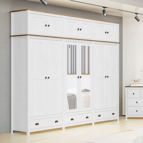 Guarda-Roupa Casal 12 Portas 3 Gavetas Topázio Branco/Freijó Madeira Pinus - Finestra