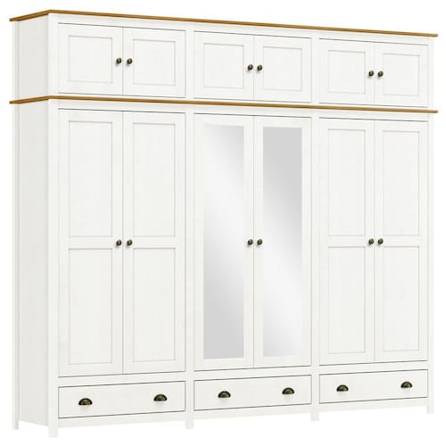 Guarda Roupa Casal 12 Portas Com Espelho e Maleiro Mazzaro F06 Branco Freijó - Lyam Decor - Branco | Marrom | Bege