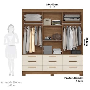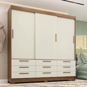 Guarda-roupa Casal 194,40 3 Portas 9 Gavetas Dante Estilo Mm Jatoba/areia