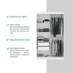 O Guarda-Roupa Casal Nero Carraro é uma peça ótima para organizar e manter seu ambiente estilo. Conta com espelho nas duas portas e ainda são reversíveis, podendo escolher o melhor acabamento na hora da montagem. Ele comporta tudo que precisa sema preocupação de falta de espaço. A peça possui grande espeaço decabideiros e gavetas, nichoslateraiscom diversas prateleiras internas, é possível armazenar roupas, acessórios e calçados, deixando tudo à mão e trazendo muita praticidade para o seu dia a dia.