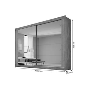 Dimensões(Cm): Comprimento(Profundidade): 63,5cm x Largura: 250,5cm x Altura: 235cm