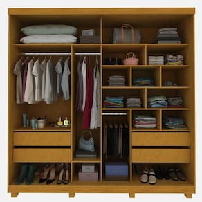 O roupeiro Ares é moderno e funcional, com um interno repleto de nichos, repartições e gavetas é o sonho de consumo de qualquer um. Possui tubos cabideiros para vestidos e peças longas, espaço para camisas e calceiro. Quatro gavetas espaçosas de corrediças telescópicas e divisórias para sapatos, travesseiros e cobertores. Com nichos organizadores que otimizam o espaço e facilitam a organização. Acabamento da Prateleira: Pintura UV Escala de Brilho da Prateleira: Semi-Fosco Possui Cabideiros: Sim Acabamento da Gaveta: Pintura UV Escala de Brilho da Gaveta: Semi-Fosco Possui Organizador de Gaveta: Não Acabamento da Porta: Pintura UV Escala de Brilho da Porta: Semi-Fosco Material do Puxador da Porta: MDF Acabamento dos Pés: Pintura Altura do Espelho: 72 cm Altura dos Pés: 6,5 cm Altura Máxima dos Pés: 6.5000 Ambiente Principal: Quarto codigo_ean: 7909903548400 Complexidade da Montagem: Alta: deve ser montado por um montador especializado Cor: Naturale Ripado/Naturale-Off White Cor do Produto: Naturale Ripado/Naturale-Off White Cor Flex: Sim Cor Interna: Naturale Escala de Brilho: Semi-Fosco Espessura do Espelho: 3 mm Fita Integrada: Sim Formato do Espelho: Retangular Gaveta com Chave: Não Guarda-Roupa Suporta Até (kg): 140 kg Itens Inclusos: 01 unidade do produto + 01 manual de montagem Largura do Espelho: 82,5 cm Linha ou Coleção: Ares Manual de Especificação Técnica: https://product-hub-prd.madeiramadeira.com.br/890270/documents/387bcf1b-3332-44cd-a94e-ae6b2530eee01758277aresroupeiro.pdf Manual de Montagem e Instalação: https://product-hub-prd.madeiramadeira.com.br/890270/documents/7a379034-93df-499a-ac6f-ce50d96f16081758276aresroupeiro.pdf Material da Gaveta: MDF Material da Porta: MDF Material da Prateleira: MDF Material dos Pés: Madeira Maciça Material Principal: MDF modular: Não Montagem Flex: Sim Necessita Montagem: Sim Origem do Produto: Nacional Peso: 238 kg Peso Máximo por Gaveta: 5 kg Peso Máximo por Prateleira: 5 kg Possui Calceiros: 01 Possui Espaço para Vestidos Longos: Sim Possui Espelho: Sim Possui Espelho Interno: Não Possui Ganchos: Não Possui iluminação: Não Possui Painel de TV: Não Possui Pés: 08 Possui Portas: Sim Possui Prateleiras: Sim Possui Sapateira: Não Produto Montado: Sim Quantidade de Espelho: 03 Espelhos com Tamanhos Iguais Quantidade de Gavetas: 04 Gavetas Recomendações de Uso, Manutenção e Limpeza: A limpeza do produto deve ser feita por meio do uso de um pano, umedecido com água, e um pano seco. É importante para fazer a limpeza do móvel nunca utilizar produtos químicos ou abrasivos. Para conservar o padrão de qualidade dos produtos Gelius, nunca arraste um móvel se este estiver cheio. Nunca puxe o móvel de frente para você, pois ele pode balançar e provocar acidentes. Sapatas Niveladoras: Não Sistema de Montagem: Convencional: parafusos, pregos, cavilhas, etc. Suporta Até (kg): 140 kg Tipo de Corrediça da Gaveta: Metálica Telescópica Tipo de Dobradiça/Corrediça da Porta: Metálica Tipo de Fixação do Espelho: Fita Dupla Face Tipo de Gaveta: Interna Tipo de Guarda-Roupa: Casal Tipo de Madeira Maciça dos Pés: Pinus Tipo de Puxador da Gaveta: Não Possui Tipo de Puxador da Porta: Externo