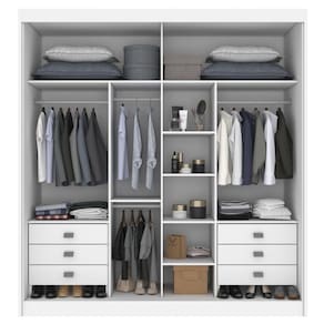 O roupeiro California é realmente fantástico! Com suas duas portas espelhadas, você terá não só um espaço amplo para armazenar suas roupas, mas também um espelho conveniente para se arrumar com facilidade. As seis gavetas são ideais para guardar itens menores de forma organizada. Além disso, os três cabideiros oferecem espaço suficiente para pendurar suas roupas, evitando amassados indesejados. Com as duas opções de montagem interna, você pode adaptar o roupeiro às suas necessidades específicas. O roupeiro California é sinônimo de funcionalidade, estilo e versatilidade, tornando-o uma excelente escolha para o seu quarto. Acabamento da Prateleira: Pintura Texturizada UV Escala de Brilho da Prateleira: Semi-Fosco Possui Cabideiros: 03 Acabamento da Gaveta: Pintura Texturizada UV Possui Organizador de Gaveta: Não Acabamento da Porta: Pintura Texturizada UV Escala de Brilho da Porta: Brilhante Altura do Espelho: 206 Ambiente Principal: Quarto Complexidade da Montagem: Média: pode ser montado por mais de uma pessoa e/ou necessite de maior conhecimento para montagem Cor: Branco Cor do Produto: Branco Escala de Brilho: Brilhante Espessura do Espelho: 3 Formato do Espelho: Retangular Gaveta com Chave: Não Itens Inclusos: 1 Guarda Roupa, Manual de Montagem e Kit Ferragens Largura do Espelho: 103 Manual de Montagem e Instalação: https://cdn2.madeiramadeira.com.br/atributo/d-doro-moveis/1368134-manual-de-montagem-gr-las-vegas-california.pdf Material da Gaveta: MDF Material da Porta: MDF Material da Prateleira: MDF Material Principal: MDF Necessita Montagem: Sim Origem do Produto: Nacional Peso: 201.5 Peso Máximo por Gaveta: 5 Possui Calceiros: 01 Possui Espelho: Sim Possui Pés: Não Possui Portas: 02 Possui Prateleiras: 09 Quantidade de Espelho: 02 Espelhos com Tamanhos Iguais Recomendações de Uso, Manutenção e Limpeza: Pano levemente umedecido e pano seco. Não utilizar produtos de limpeza. Sistema de Montagem: Parafusos e cavilhas. Tipo de Corrediça da Gaveta: Metálica Telescópica Tipo de Dobradiça/Corrediça da Porta: Aço Tipo de Fixação do Espelho: Molduras Tipo de Gaveta: Interna Tipo de Guarda-Roupa: Casal Tipo de Puxador da Gaveta: Externo Tipo de Puxador da Porta: Embutido