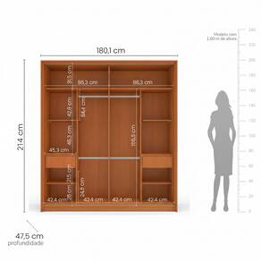 O Guarda-Roupa 2 Portas de Correr Madrid da Politorno Móveis é a solução ideal para quem busca organização inteligente, design moderno e excelente aproveitamento de espaço: com 200 cm de altura, 180,1 cm de largura e 47,5 cm de profundidade, ele conta com 2 portas de correr, perfeitas para ambientes menores, além de 4 gavetas internas que facilitam a organização de roupas e acessórios e 2 cabideiros que garantem praticidade no dia a dia. Seu puxador embutido segue uma forte tendência de mercado, entregando um visual mais limpo, sofisticado e atemporal, enquanto o acabamento em pintura UV assegura maior resistência, durabilidade e facilidade na limpeza. Um guarda-roupa funcional, elegante e bem distribuído, pensado para transformar o quarto com qualidade, conforto e excelente custo-benefíci Acabamento da Prateleira: Pintura UV Escala de Brilho da Prateleira: Semi-Fosco Possui Cabideiros: Sim Acabamento da Gaveta: Pintura UV Escala de Brilho da Gaveta: Semi-Fosco Possui Organizador de Gaveta: Não Acabamento da Porta: Pintura UV Escala de Brilho da Porta: Semi-Fosco Ambiente Principal: Quarto codigo_ean: 7900288301956 Complexidade da Montagem: Média: pode ser montado por mais de uma pessoa e/ou necessite de maior conhecimento para montagem Cor: Azul/Freijó Cor da Porta: Azul Cor do Produto: Azul/Freijó Cor Interna: Freijó Escala de Brilho: Semi-Fosco Espessura da Estrutura (mm): 15 mm Espessura das Portas (mm): 15 mm Espessura das Prateleiras (mm): 15 mm Espessura do Fundo (mm): 3 mm Espessura do Fundo das Gavetas (mm): 15 mm Gaveta com Chave: Não Itens Inclusos: 1 Guarda-Roupa, Kit Ferragens, Manual de Montagem e Termo de Garantia Linha ou Coleção: Madrid Manual de Montagem e Instalação: https://product-hub-prd.madeiramadeira.com.br/767824953/documents/95486e4f-fa79-4964-8cda-5f3d47c2f7cb3344168622417659721369235.pdf Marca: Politorno Material da Gaveta: MDP Material da Porta: MDP Material da Prateleira: MDP Material Principal: MDP modular: Não Necessita Montagem: Sim Origem do Produto: Nacional Peso: 106,95 kg Peso Máximo por Gaveta: 5 kg Peso Máximo por Prateleira: 5 kg Possui Calceiros: Sim Possui Espelho: Não Possui Pés: Não Possui Portas: Sim Possui Prateleiras: Sim Produto Montado: Sim Quantidade de Cabideiros: 02 Cabideiros Quantidade de Gavetas: 02 Gavetas Quantidade de Prateleiras: 08 Prateleiras Recomendações de Uso, Manutenção e Limpeza: Utilize um pano macio umedecido com água e sabão neutro, seguido de pano seco. Não utilize produtos químicos ou abrasivos para limpeza, pois estes danificam o revestimento do móvel. Sistema de Montagem: Cavilha, Parafuso, Minifix e prego. Tipo de Corrediça da Gaveta: Metálica Telescópica Tipo de Dobradiça/Corrediça da Porta: Metálica Tipo de Gaveta: Interna Tipo de Guarda-Roupa: Casal Tipo de Puxador da Gaveta: Não Possui Tipo de Puxador da Porta: Embutido Marca: Não Informado