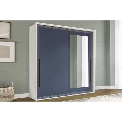 Guarda Roupa Casal 2 Portas de Correr (1 c/ espelho) e 2 Gavetas Valência Branco/Azul - Politorno