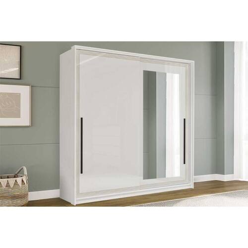 Guarda Roupa Casal 2 Portas de Correr (1 c/ espelho) e 2 Gavetas Valência Branco - Politorno
