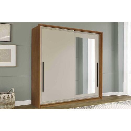 Guarda Roupa Casal 2 Portas de Correr (1 c/ espelho) e 2 Gavetas Valência Freijo/Creme - Politorno