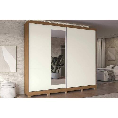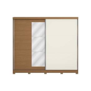 Guarda Roupa Casal 2 Portas De Correr (1 C/ Espelho) E 4 Gavetas C/ Pés Cb01t583 Canela/off White - Kappesberg