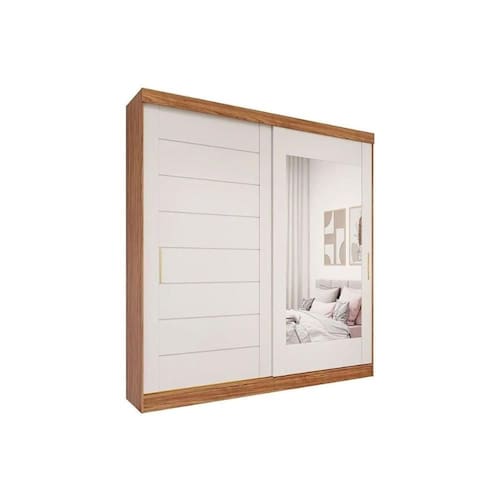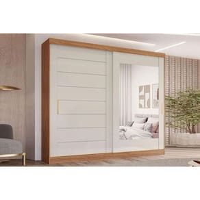 Guarda Roupa Casal 2 Portas de Correr (1 c/ Espelho) e 8 Gavetas Florença Cinamomo/Off White - Panan