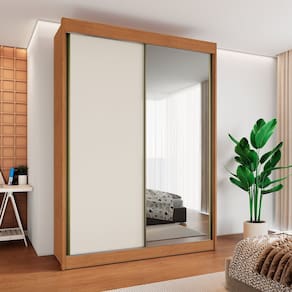 Pode usá-lo como guarda-roupa com porta de correr infantil? Claro. Além fácil de limpar, possui gavetas e espaço de sobra para brinquedos Acabamento da Prateleira: Pintura Escala de Brilho da Prateleira: Semi-Fosco Acabamento da Gaveta: Pintura Escala de Brilho da Gaveta: Semi-Fosco Possui Organizador de Gaveta: Não Acabamento da Porta: Pintura UV Escala de Brilho da Porta: Semi-Fosco Altura do Espelho: 225,6 cm Ambiente Principal: Quarto codigo_ean: 7908548404218 Complexidade da Montagem: Média: pode ser montado por mais de uma pessoa e/ou necessite de maior conhecimento para montagem Cor: Cinamomo/Off White Cor do Produto: Cinamomo/Off White Cor Interna: Cinamomo/Off White Escala de Brilho: Semi-Fosco Espessura da Estrutura (mm): 2,5 mm Espessura das Portas (mm): 1,5 mm Espessura das Prateleiras (mm): 1,5 mm Espessura do Espelho: 3 mm Espessura do Fundo (mm): 1,5 mm Espessura do Fundo das Gavetas (mm): 1,5 mm Formato do Espelho: Retangular Gaveta com Chave: Não Guarda-Roupa Suporta Até (kg): 90 kg Itens Inclusos: 1 Guarda-Roupa, Kit Ferragens e Manual de Montagem. Largura do Espelho: 89 cm Linha ou Coleção: Chicago Manual de Montagem e Instalação: https://product-hub-prd.madeiramadeira.com.br/390868356/documents/0392dbc8-7031-4d5a-8d2d-86806f228bb52876298554117455134816209.pdf Marca: Conquista Móveis Material da Gaveta: MDF Material da Porta: MDF Material da Prateleira: MDF Material Principal: MDF modular: Não Montagem Flex: Não Necessita Montagem: Sim Nicho com Cabideiro: Não Origem do Produto: Nacional Peso: 212,81 kg Peso Máximo por Gaveta: 5 kg Peso Máximo por Prateleira: 10 kg Porta Janelada: Não Possui Calceiros: Não Possui Capelinha: Não Possui Espaço para Vestidos Longos: Sim Possui Espelho: Sim Possui Espelho Interno: Não Possui iluminação: Não Possui Painel de TV: Não Possui Penteadeira: Não Possui Pés: Não Possui Portas: Sim Possui Prateleiras: Sim Produto Montado: Sim Quantidade de Cabideiros: 02 Cabideiros Quantidade de Espelho: 01 Quantidade de Gavetas: 04 Gavetas Quantidade de Portas com Espelhos: 1 Porta com Espelho Quantidade de Prateleiras: 08 Prateleiras Recomendações de Uso, Manutenção e Limpeza: Na limpeza não utilizar produtos químicos e abrasivos usar apenas um pano umedecido para garantir a maior durabilidade do móvel. Sistema de Montagem: Parafusos e Cavilhas Suporta Até (kg): 90 kg Tipo de Corrediça da Gaveta: Metálica Telescópica Tipo de Dobradiça/Corrediça da Porta: Telescópica Tipo de Fixação do Espelho: Fita Dupla Face Tipo de Gaveta: Interna Tipo de Guarda-Roupa: Casal Tipo de Puxador da Gaveta: Externo Tipo de Puxador da Porta: Não Possui