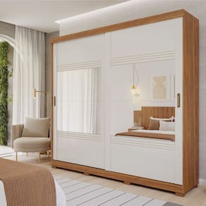 Guarda Roupa 100% MDF, espaçoso, com divisórias internas pensadas para uma perfeita organização. As portas de correr oferecem um ganho de espaço no ambiente e ainda o tornam mais elegantes e práticos, com moldura em MDF 25cm, detalhes em baixo relevo e 2 espelhos grandes. Os acessórios são de qualidade superior, roldanas com regulagem para pisos desnivelados e rolamento para deslize suave. Suas 4 gavetas internas contam com corrediças metálicas telescópicas, os puxadores são em ABS na cor Bronze e os cabideiros alumínio com suportes metálicos. Para completar, é possível optar por 2 opções de montagem do lado direito, Espaço para Roupas Longas ou Calceiro. Contém 8 pés em ABS. Acabamento da Prateleira: Pintura UV Escala de Brilho da Prateleira: Fosco Possui Cabideiros: Sim Acabamento da Gaveta: Pintura UV Escala de Brilho da Gaveta: Fosco Material do Puxador da Gaveta: MDF Possui Organizador de Gaveta: Não Acabamento da Porta: Pintura UV Escala de Brilho da Porta: Brilhante Material do Puxador da Porta: ABS Acabamento dos Pés: Impressão Altura do Espelho: 53,8 cm Altura dos Pés: 5 cm Altura Máxima dos Pés: 5.0000 Ambiente Principal: Quarto codigo_ean: 7900288143983 Complexidade da Montagem: Alta: deve ser montado por um montador especializado Cor: Cinamomo/Off White Cor da Porta: Off White Cor do Produto: Cinamomo/Off White Cor Interna: Cinamomo Escala de Brilho: Brilhante Espessura da Estrutura (mm): 15 mm Espessura das Portas (mm): 15 mm Espessura das Prateleiras (mm): 15 mm Espessura do Espelho: 3 mm Espessura do Fundo (mm): 2,5 mm Espessura do Fundo das Gavetas (mm): 2,5 mm Formato do Espelho: Retangular Gaveta com Chave: Não Itens Inclusos: 1 Guarda-Roupa, Kit Ferragens e Manual de Montagem. Largura do Espelho: 101 cm Linha ou Coleção: Marsala Manual de Montagem e Instalação: https://product-hub-prd.madeiramadeira.com.br/298555930/documents/fe0eb10d-e377-4895-aec4-056404a9059aa9d2735c1fec99871746727221.pdf Marca: Espresso Móveis Material da Gaveta: MDF Material da Porta: MDF Material da Prateleira: MDF Material dos Pés: ABS Material Principal: MDF modular: Não Necessita Montagem: Sim Origem do Produto: Nacional Peso: 240,6 kg Peso Máximo por Gaveta: 5 kg Peso Máximo por Prateleira: 5 kg Porta Janelada: Não Possui Capelinha: Não Possui Espaço para Vestidos Longos: Sim Possui Espelho: Sim Possui Espelho Interno: Não Possui Ganchos: Não Possui iluminação: Não Possui Nichos: Não Possui Painel de TV: Não Possui Penteadeira: Não Possui Pés: 08 Possui Portas: Sim Possui Prateleiras: Sim Possui Sapateira: Não Produto Montado: Sim Quantidade de Cabideiros: 02 Cabideiros Quantidade de Espelho: 04 Espelhos com Tamanhos Iguais Quantidade de Gavetas: 04 Gavetas Quantidade de Portas com Espelhos: 2 Portas com Espelho Quantidade de Prateleiras: 08 Prateleiras Recomendações de Uso, Manutenção e Limpeza: Para limpeza utilizar somente pano limpo e macio, ligeiramente umedecido em água (apenas o bastante para remover a poeira), seguido de um pano seco. Sapatas Niveladoras: Não Sistema de Montagem: Parafusos autoatarraxantes, conjuntos minifix, cavilhas de madeira, acessórios plásticos e metálicos Tipo de Corrediça da Gaveta: Metálica Telescópica Tipo de Dobradiça/Corrediça da Porta: Telescópica Tipo de Fixação do Espelho: Parafusos Tipo de Gaveta: Interna Tipo de Guarda-Roupa: Casal Tipo de Puxador da Gaveta: Não Possui Tipo de Puxador da Porta: Externo