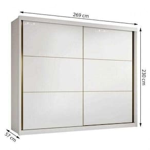 Acabamento da Prateleira:Pintura; Escala de Brilho da Prateleira:Fosco; Possui Cabideiros:02;Acabamento da Gaveta:Pintura;Escala de Brilho da Gaveta:Fosco;Possui Organizador de Gaveta:Não; Acabamento da Porta:Pintura;Escala de Brilho da Porta:Brilhante ;Material do Puxador da Porta:Alumínio; Cor Interna:Bege; Itens Inclusos:1 Guarda Roupa com Espelho e Manual de Montagem.; Material da Gaveta:MDF; Material da Porta:MDF; Material da Prateleira:MDF; Necessita Montagem:Sim; Peso Máximo por Gaveta:10 Kg; Tipo de Corrediça da Gaveta:Metálica Telescópica; Possui Pés:Não; Tipo de Dobradiça/Corrediça da Porta:Alumínio;Estilo:Contemporâneo;Itens Inclusos:1 Guarda Roupa e Manual de Montagem .;Cor do Produto:Branco; Tipo de Puxador da Gaveta:Embutido; Tipo de Puxador da Porta:Externo; Origem do Produto:Nacional; M calculo:Unidade; Altura:230 Cm; Complexidade da Montagem:Alta: deve ser montado por um montador especializado; Cor Predominante:Branco; Escala de Brilho:Brilhante; Garantia:03 Meses; Gaveta com Chave:Não; Guarda-Roupa Suporta Até (kg):100 Kg; Largura:269 Cm; Linha ou Coleção:Toronto Plus; Material Principal:MDF; Peso:238 Kg; Peso Máximo por Prateleira:5 Kg; Possui Calceiros:02;Possui Espelho:Não; Possui Gavetas:06;Possui Portas:02;Possui Prateleiras:08;Profundidade:57 Cm; Sistema de Montagem:Parafusos .;Tipo de Gaveta:Interna; Tipo de Porta:Correr; Recomendações de Uso, Manutenção e Limpeza:Limpar somente com pano macio e ;seco, não colocar diretamente em incidência da luz solar, não colocar em lugar úmido.; Cor:Branco