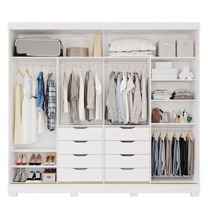 Renove seu quarto com muito estilo e qualidade com o guarda roupa Siena uma escolha perfeita. Feito com 100% MDF e acabamento em Pintura UV, ele traz todo o charme das tendências atuais de decoração, além de garantir maior resistência. Com divisões internas bem distribuídas, possui 7 prateleiras e 8 gavetas com corrediças telescópicas. Seus cabideiros e calceiro são em alumínio.
