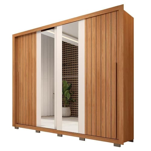Perfeito para casais que prezam por um quarto organizado e cheio de estilo, esse guarda roupa com espelho não apenas atende às necessidades funcionais, mas também serve como peça central na decoração do ambiente. Internamente, cada centímetro é pensado para maximizar a organização: das gavetas amplas às várias prateleiras, além do cabideiro para vestidos e ternos. Já a opção de montagem com ou sem pés oferece versatilidade, enquanto o detalhe ripado nas portas agrega uma estética refinada. Para completar, as tonalidades harmonizam com qualquer paleta, fazendo desse guarda roupa 100% MDF a escolha perfeita para quem busca combinar utilidade e beleza no quarto de casal.