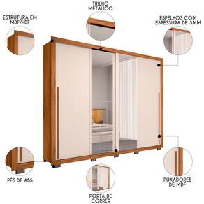 Com um interior espaçoso que incorpora 4 gavetas, estrategicamente distribuídas, e 3 cabideiros resistentes, suas roupas e acessórios estarão sempre ao alcance das mãos. O design moderno aliado às tonalidades neutras introduz uma paleta de cores que se adapta perfeitamente a qualquer decoração, adicionando um toque contemporâneo ao seu refúgio pessoal, enquanto os quatro espelhos proporcionam profundidade ao ambiente e completa o charme.