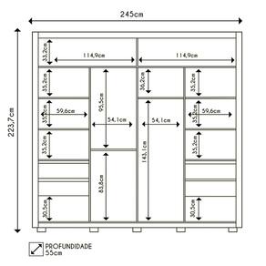 Largura: 245 cm.