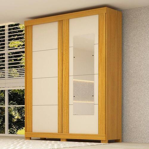 Guarda Roupa Casal 2 Portas de Correr com Espelhos Flex Color 100% Mdf Boldina Espresso Móveis Marrom/Off White - Off White
