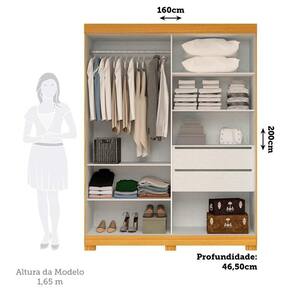 Informações Complementares: Molduras das Portas/Puxadores em 18mm. Trilho superior em MDF com sistema de molas e inferior em alumínio. Cabideiro em alumínio.