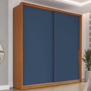 Guarda Roupa Casal 2 Portas de Correr e 2 Gavetas Porto Freijo/Azul - Politorno