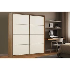 Material do Calceiro - Calceiro Metálico Tipo de Cabideiro - Aéreo Material dos Cabideiros - Cabideira Metálico Tipo de Porta do Guarda-Roupa - Portas de Correr Material das Portas - Portas em MDP Material do trilho da porta de correr - Trilho Metálico Quantidade de Portas - 2 Portas de Correr Material das Gavetas - Gavetas em MDP Tipo de Corrediça - c/ Corrediças Telescópicas Quantidade de Gavetas - 3 Material das Prateleiras - Prateleiras em MDP Quantidade de Prateleiras - 4 Quantidade de Nichos - 6 Nichos