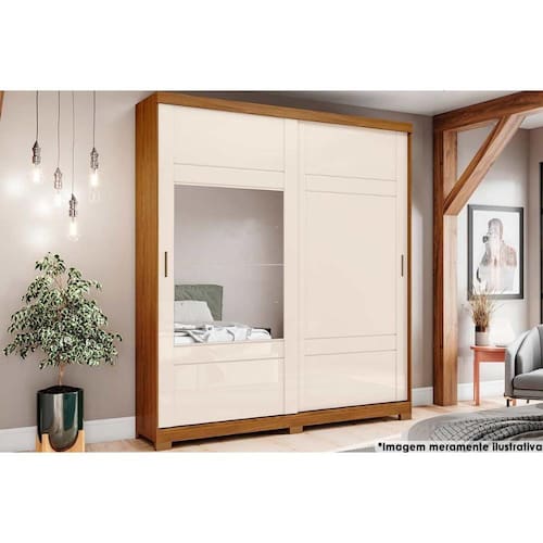 Guarda Roupa Casal 2 Portas de Correr e 3 Gavetas c/ Espelho e Pés Verg Nature/Off White - Henn
