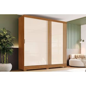 Guarda Roupa Casal 2 Portas de Correr e 3 Gavetas c/ Pés Briz B352 Nature/Off White - Henn
