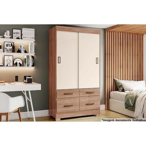 Material dos Cabideiros - Cabideiro de Madeira Quantidade de Portas - 2 Portas de Correr Tipo de Corrediça - c/ Corrediças Metálicas Quantidade de Gavetas - 4 Gavetas Tipo dos Pés - ABS/PVC - Pés Opcionais Quantidade de Prateleiras - 2