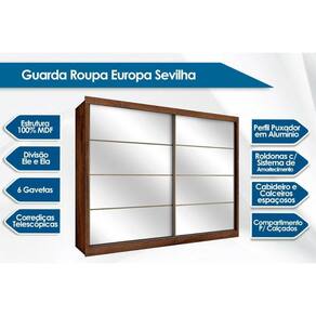 Guarda Roupa Casal 2 Portas de Correr e 6 Gavetas c/2 Espelhos Sevilha Branco - Europa