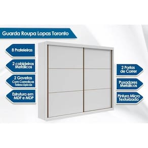 Guarda Roupa Casal 2 Portas de Correr e 6 Gavetas Toronto Plus Branco - Lopas