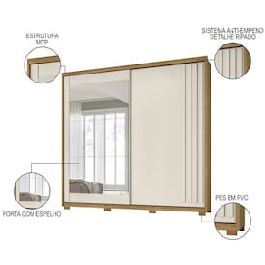 O modelo queridinho de que procura bom-gosto aliado ao estilo moderno e funcionalidade, o Guarda Roupa Casal 2 Portas de Correr e Espelho 242cm Lara M07 Freijó/Off White, da Mpozenato, é a tradução de tudo isso.