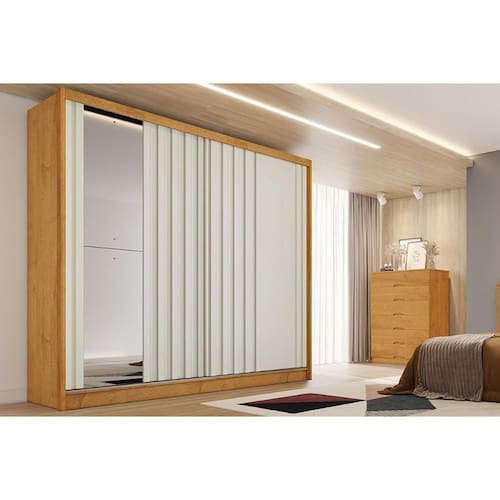 Material de Estrutura - MDF Tipo de Pintura - Ultravioleta Tipo de Acabamento da Pintura - Semi Brilho Tipo de Acabamento - Acabamento Interno Branco Tipo de Moldura do Guarda Roupa - Molduras em MDF Diferenciais Guarda Roupas - Calceiro - Sapateira - Maleiro