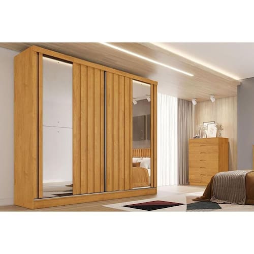 Guarda Roupa Casal 2 Portas De Correr Ripadas C/ Espelhos E 4 Gavetas Galati Peroba - Europa
