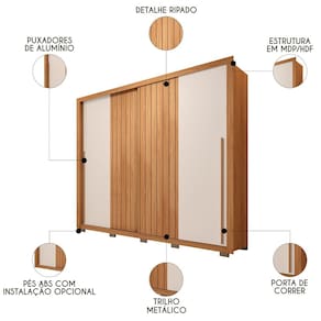 O Guarda Roupa Casal 2 Portas de Correr Ripado 245cm Moviment Freijó/Off White, da Caemmun, redefine o armazenamento moderno com um toque de classe.